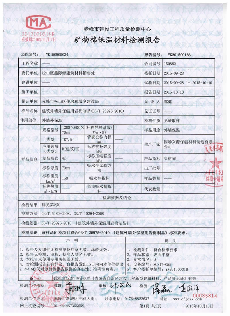 >>>2015-10-15礦物棉保溫材料檢測報告.